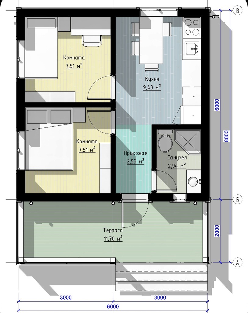 - XАPАKТEPИCТИКИ ДОMА 6x8.